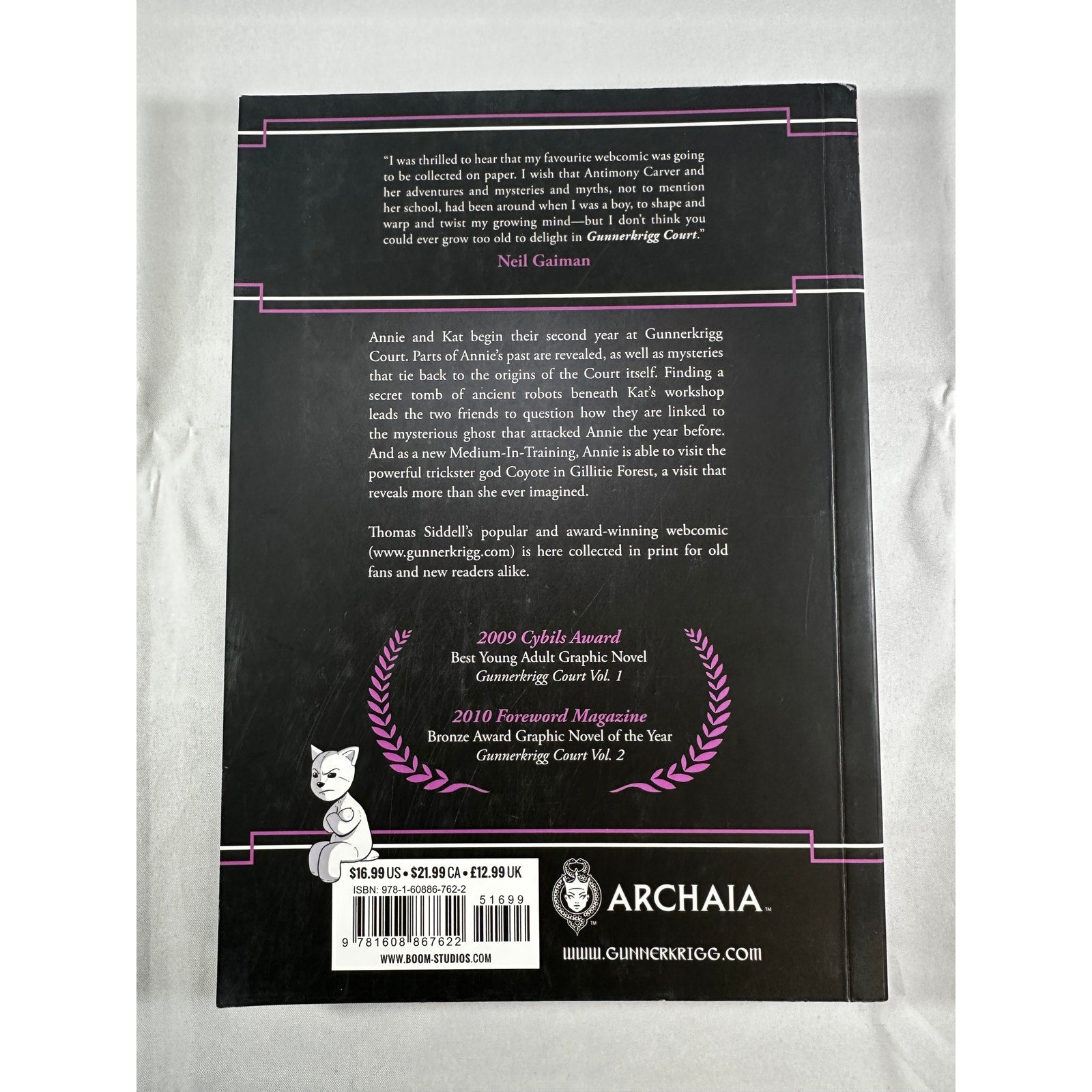 This volume follows Antimony Carver and her best friend Kat as they begin their second year at the strange boarding school known as Gunnerkrigg Court, where advanced technology, ancient magic, and eerie mysteries coexist in uneasy balance. When Annie and Kat uncover a hidden tomb filled with ancient robots, they’re pulled into secrets that reach back to the Court’s origins and the long‑running conflict with the neighboring Gillitie Wood. Parts of Annie’s past come to light, Kat’s research into the Court’s machines takes a surprising turn, and new threats and allies emerge among ghosts, gods, and eccentric classmates.